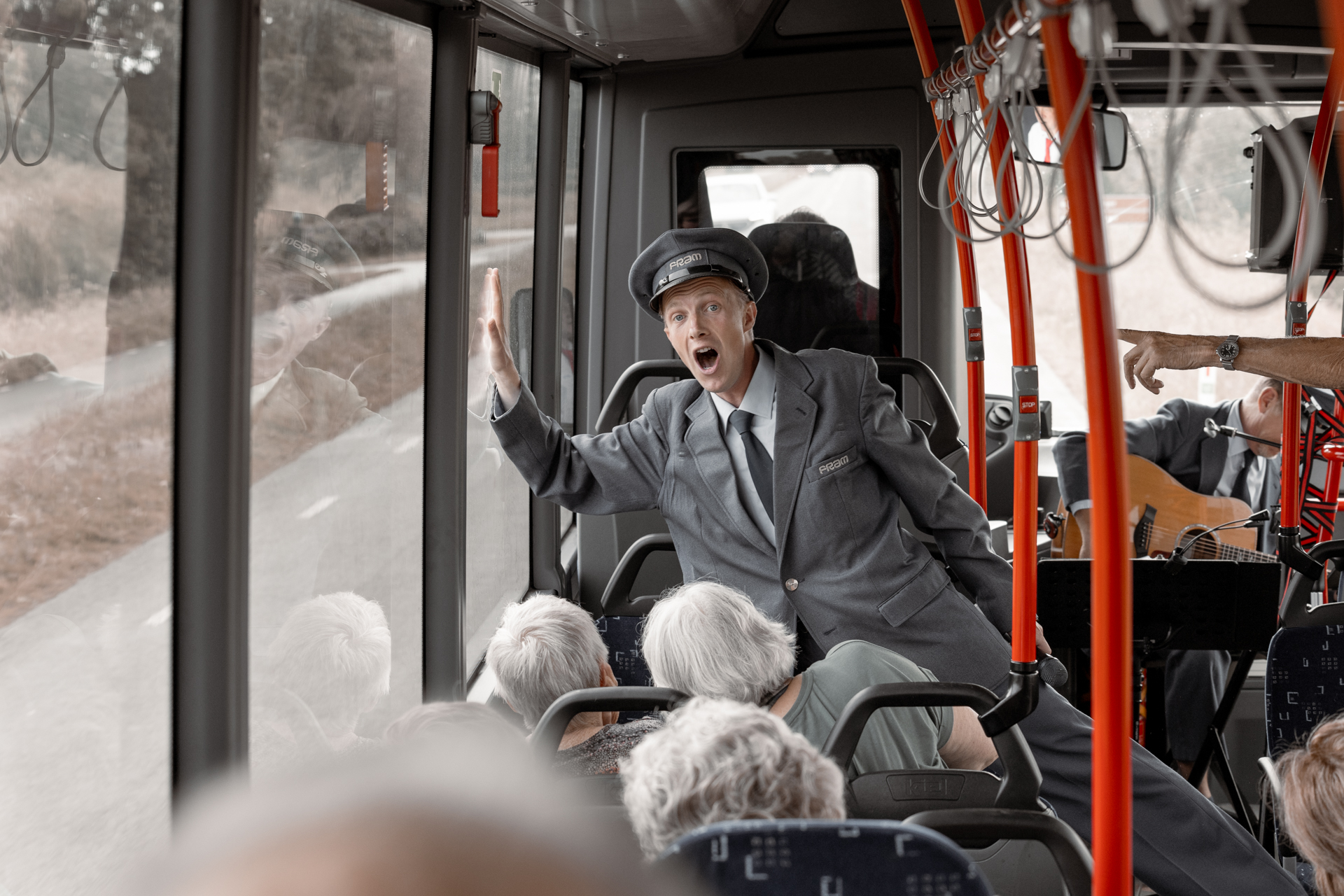 Stap in bij Folkert Wesseling en laat je meevoeren in een rijdende theatervoorstelling vol muziek, sketches en Friese nuchterheid. In een oude bus rijdt je in 1,5 uur tijd rond het Tjeukemeer. Deze interactieve voorstelling gaat letterlijk en figuurlijk alle kanten op, geen rit is hetzelfde. Onderweg zijn er drie stops: op mooie plekken of bij locaties die iets betekenen voor de groep. Tijdens de stops klinken muziek en zang.