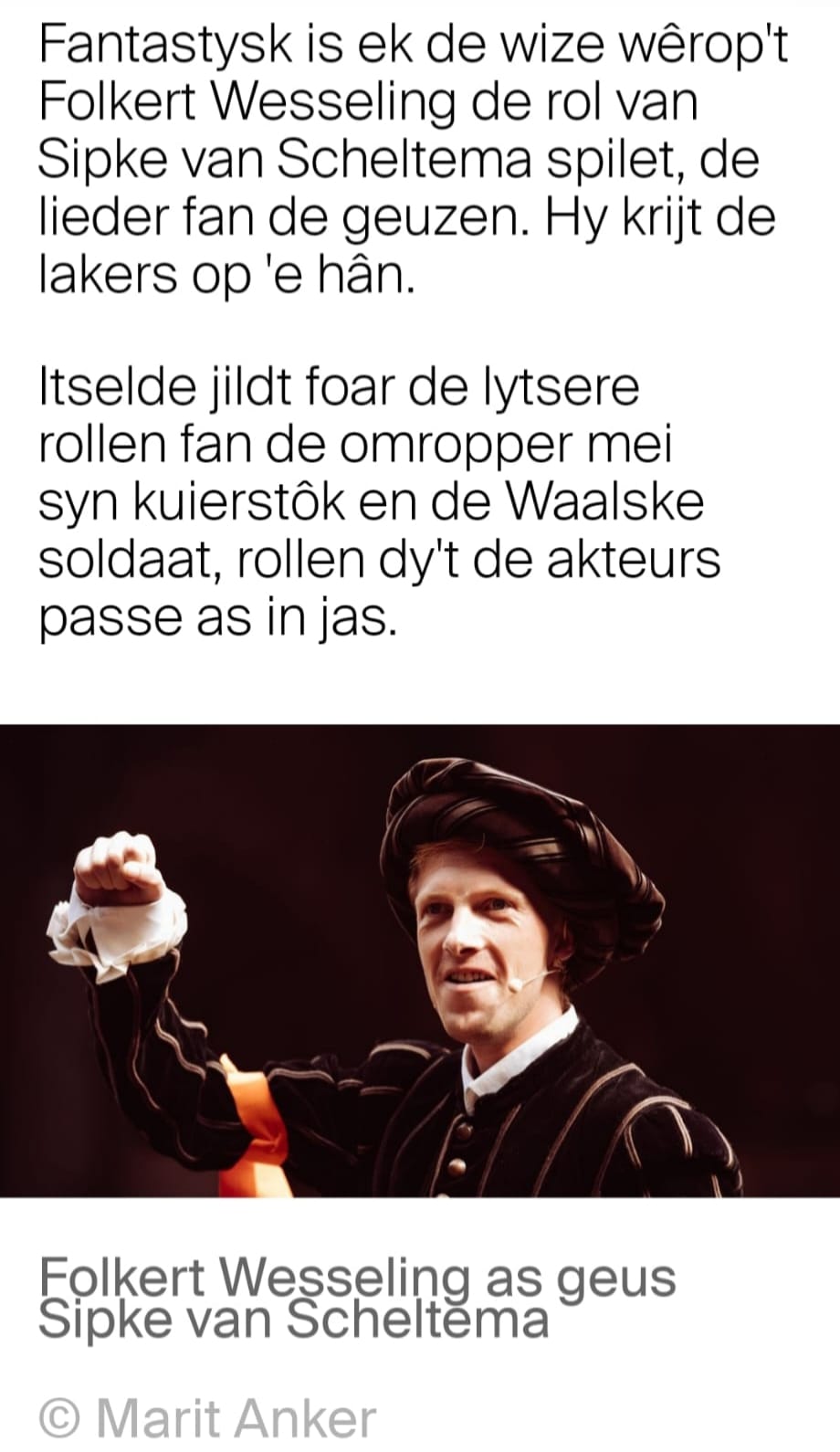 Een muzikaal theaterdrama, geregisseerd door Bruun Kuijt, gezien door de ogen van stadsbewoners die meespelen of toekijken, gebaseerd op het bewaard gebleven nauwkeurig ooggetuigenverslag van de arts Hendrik van Bra.